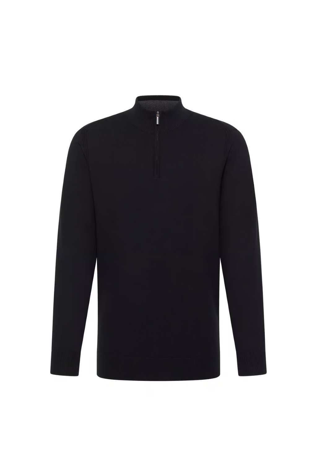 Pánský luxusní svetr z bavlny a kašmíru s krátkým zipem - černý