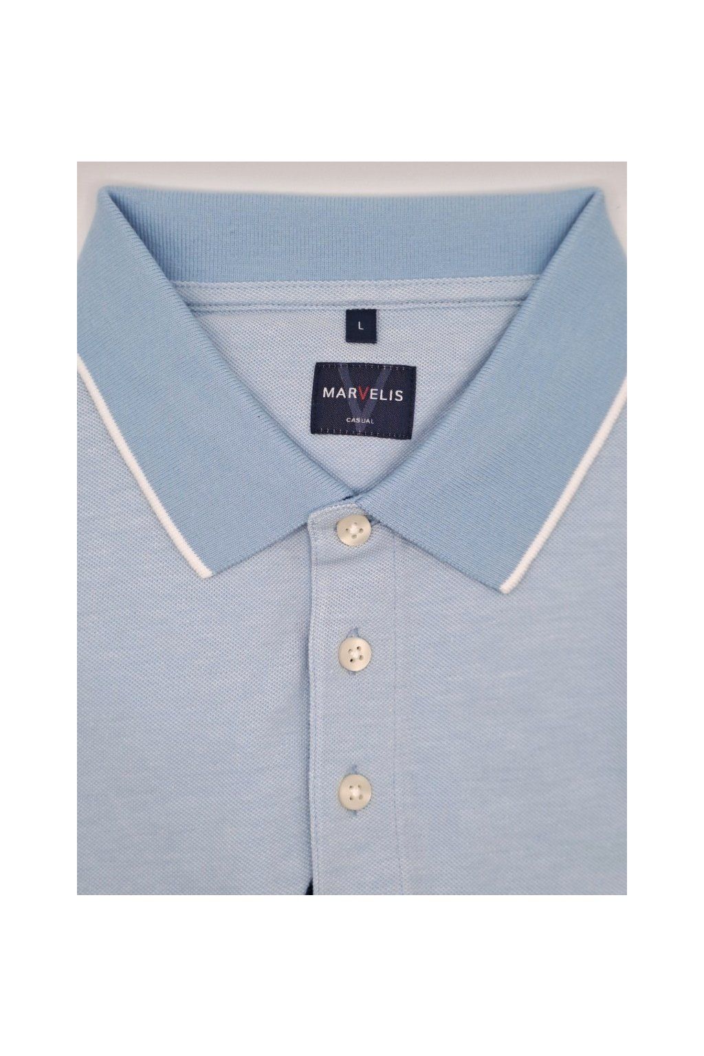 Pánské piké polo tričko Marvelis ze 100% bavlny zaujme kontrastním límečkem a proužky na rukávech. Nabízí vysoký komfort, prodyšnost a upravený vzhled pro každý den.