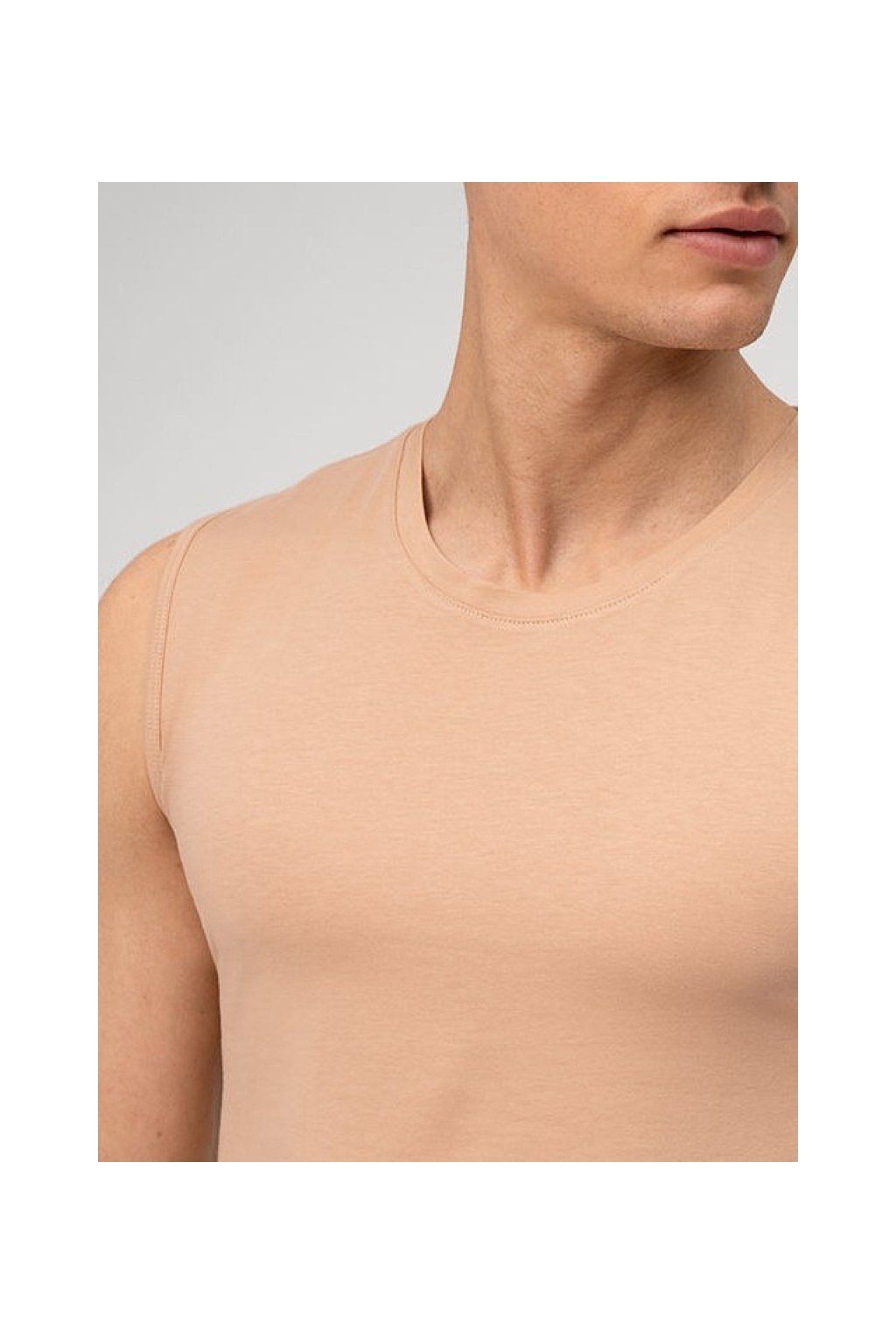 Neviditelné pánské tílko pod košili v tělové barvě perfektně splývá s pokožkou a zůstává skryté i pod bílou košilí. Pomáhá zachytit pot, omezuje vznik map a zvyšuje komfort během dne. Ideální jako pánské spodní tílko pod košili do práce i na formální příležitosti.