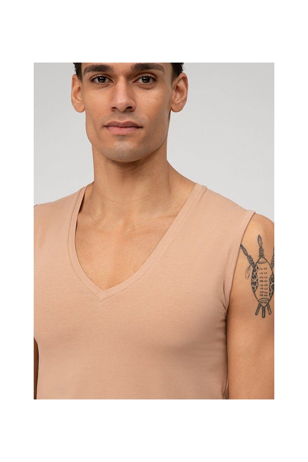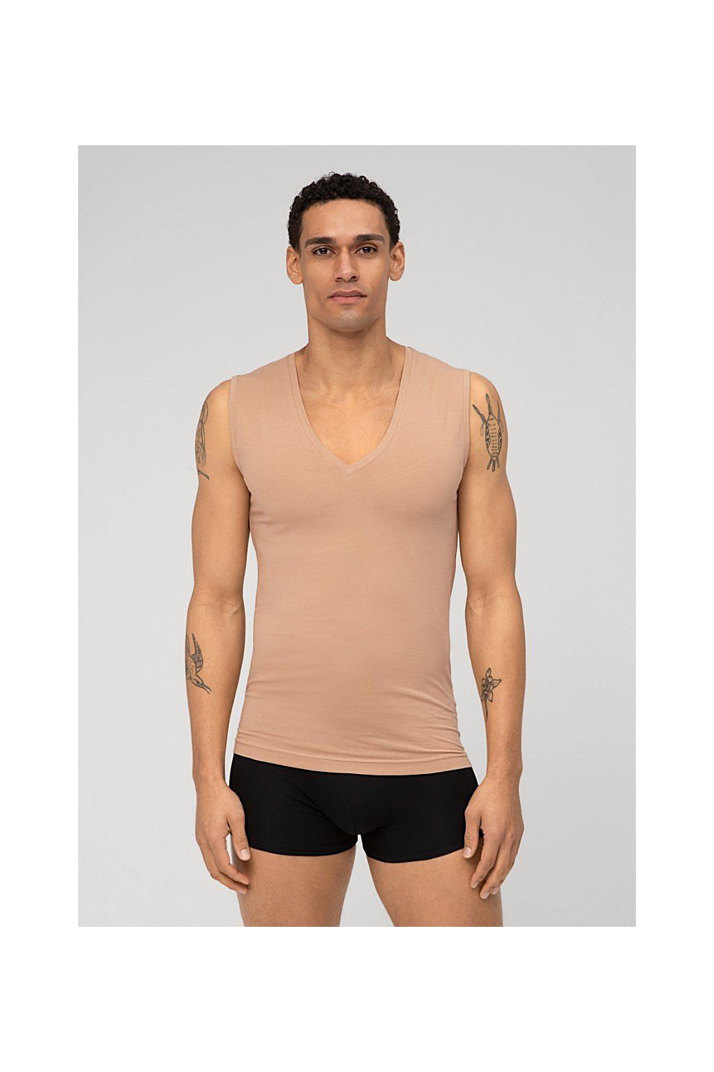 Neviditelné pánské tílko pod košili v tělové barvě perfektně splývá s pokožkou a zůstává skryté i pod bílou košilí. Pomáhá zachytit pot, omezuje vznik map a zvyšuje komfort během dne. Ideální jako pánské spodní tílko pod košili do práce i na formální příležitosti.