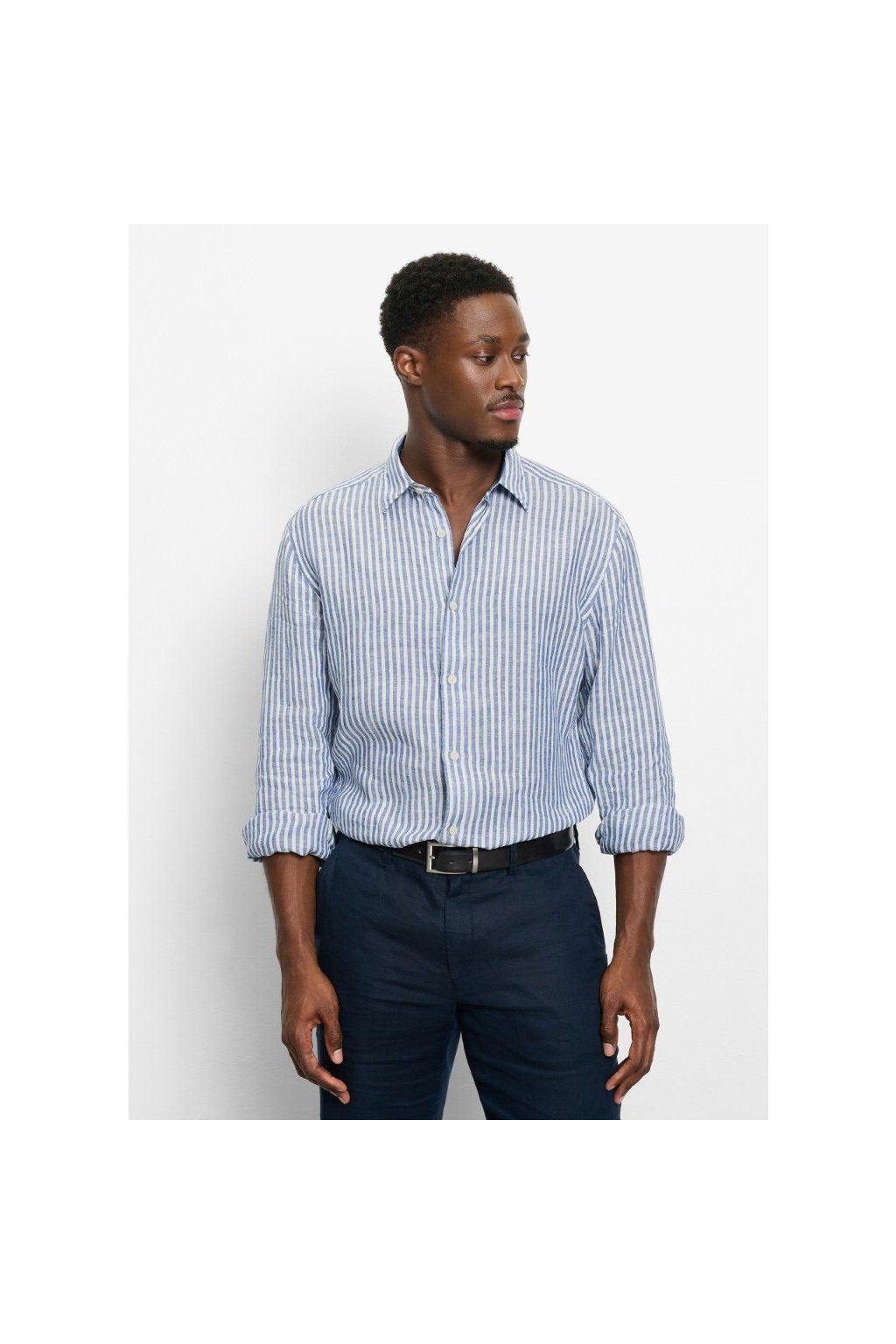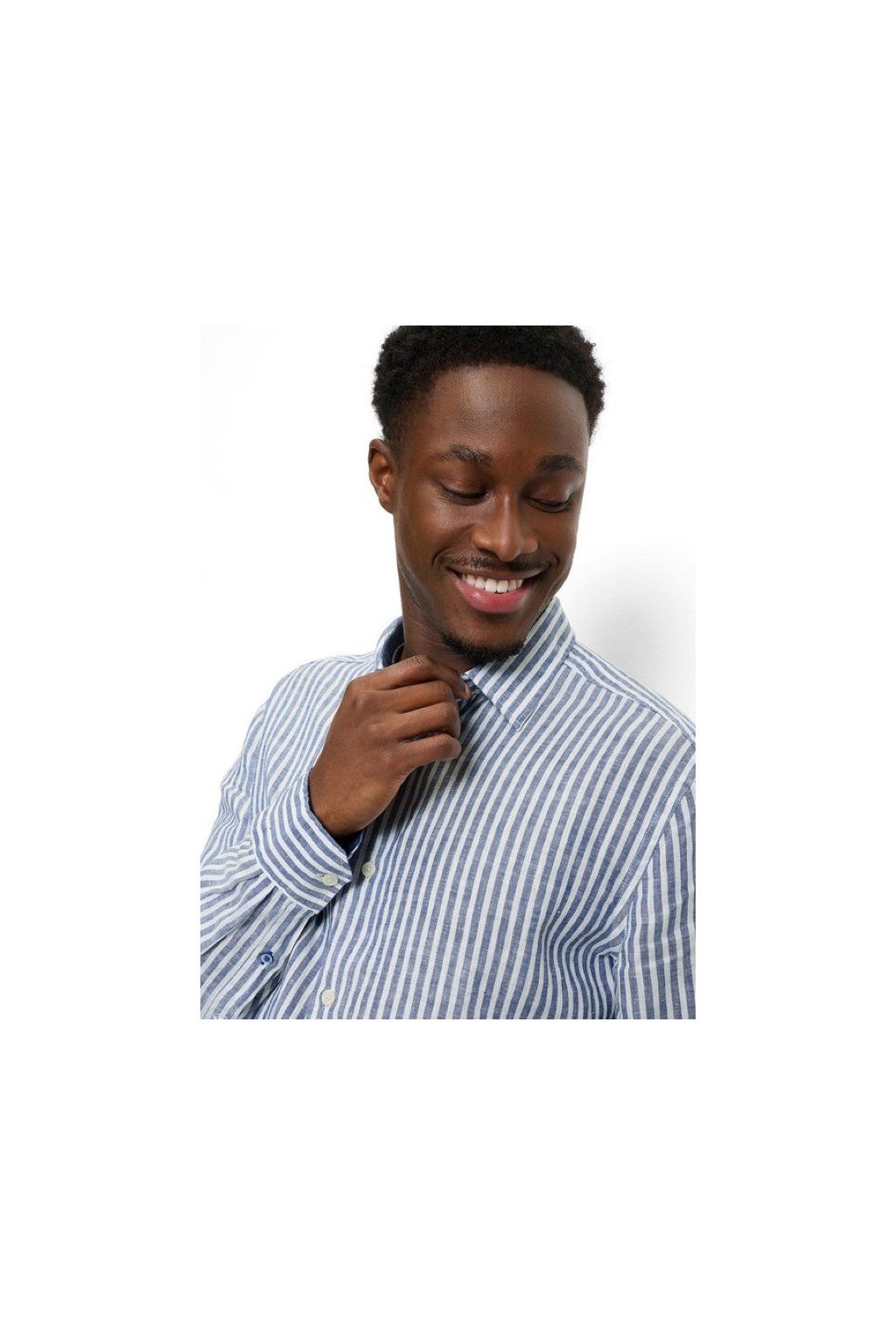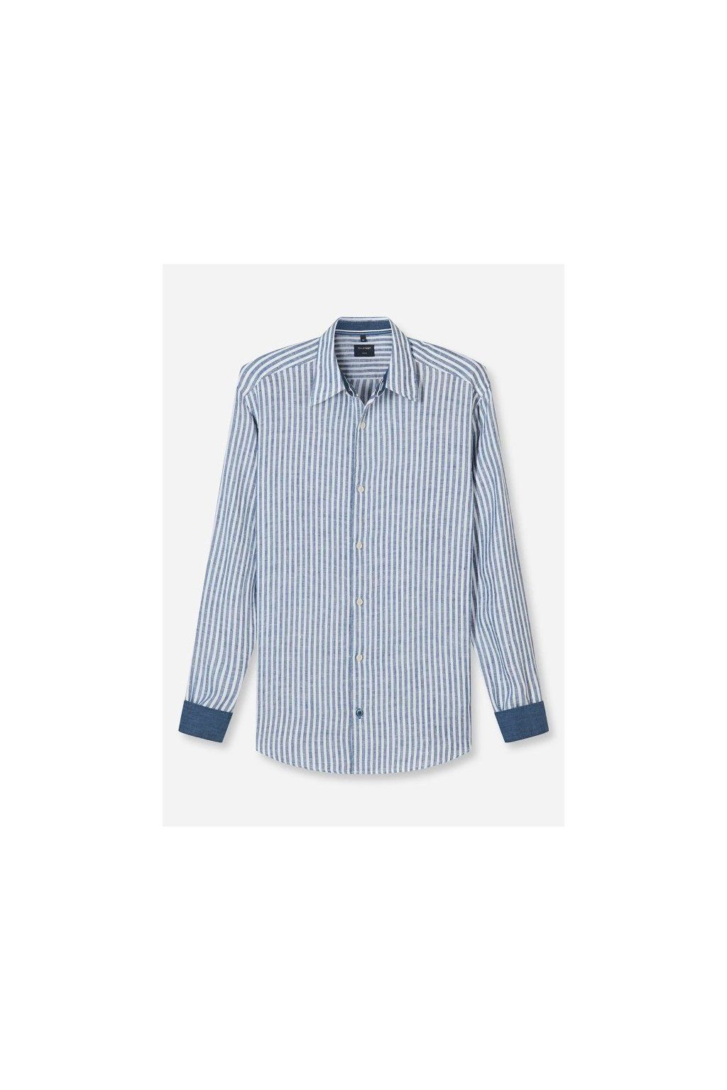 Lněná košile OLYMP Casual Regular Fit - pruhovaná - modrá