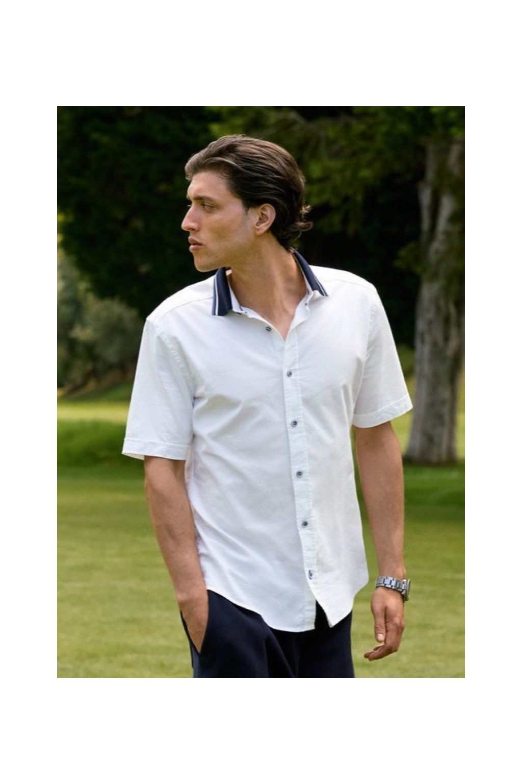 Pánská košile OLYMP Casual Regular Fit s krátkým rukávem - bílá