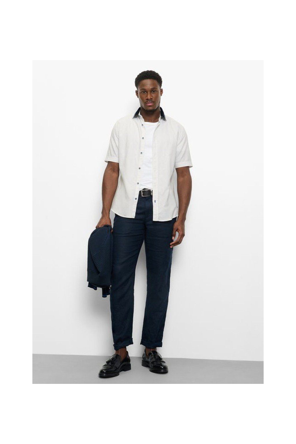 Detaily hrají hlavní roli – kontrastní límeček, barevně laděné knoflíky a čistá linie bez zbytečných prvků dodávají košili moderní charakter, který snadno zapadne do každodenního outfitu.